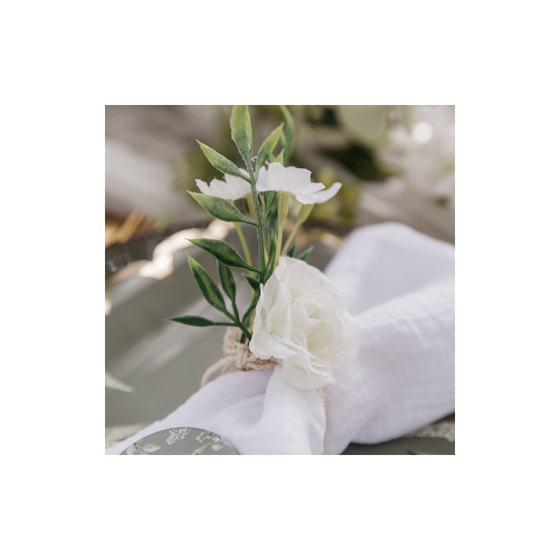 4 Ronds de Serviette - Rose et Jasmin BlancØ5cm
