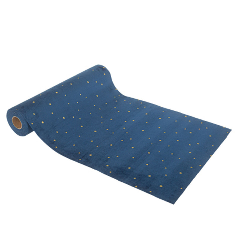 Chemin de table Little dots velours marine et or. 28CM X 3M.