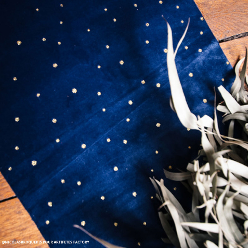 Chemin de table Little dots velours marine et or.
