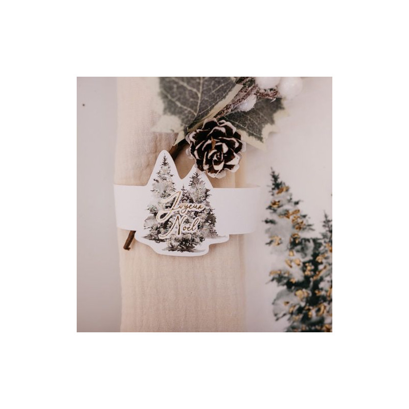 8 Ronds de Serviette "Joyeux Noël" Winterland Papier Vert, Or et Paillettes Irisées 20,7x5cm