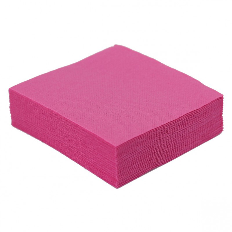 Serviette cocktail fuchsia carrée de 25 x 25cm jetable